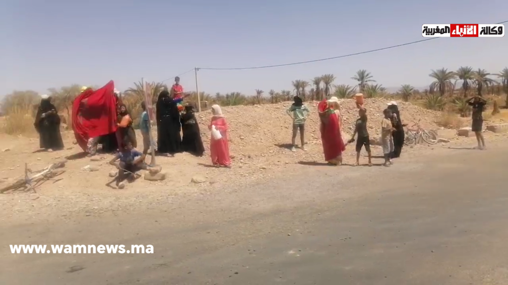 الاحتجاجات اندلعت أول أمس الثلاثاء من دوار تيكيت شعوف، بعدما بلغ العطش حدًا غير مسبوق. نساء يحملن القوارير الفارغة، رجال يجرّون الدلاء، وأطفال تكسو وجوههم ملامح التعب… جميعهم خرجوا بحثًا عن قطرة ماء، حيث توجه النساء والأطفال إلى الطريق الوطنية رقم 9 الرابطة بين ورزازات وزاكورة، مرددين شعارات قوية تعكس مأساتهم ومعاناتهم، من قبيل : “هذا عيب، هذا عار… بغينا الماء يكون في الدار” ، “هذا عيب هدا عار.. وسيدنا، حنا في خطر”، في رسالة واضحة وصريحة تعبر عن آلامهم ونداءاتهم لجلالة الملك حفظه الله وسدد خطاه، وإلى السلطات المعنية في شخص السيد العامل للتدخل العاجل.