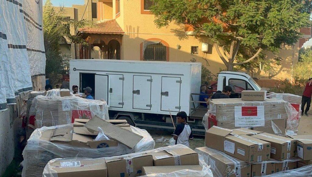 الشروع في توزيع المساعدات الانسانية المغربية على سكان قطاع غزة